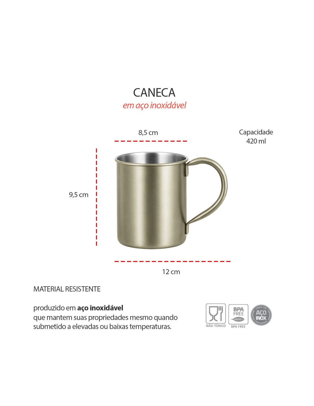 A caneca moscow mule em aço inox é elegante, resistente e ideal para servir drinks com estilo. Muito utilizada para o preparo do tradicional moscow mule, tambem é pratica para outras bebidas geladas, mantendo a temperatura por mais tempo. Com design classico e acabamento sofisticado, é perfeita para bar, festas, eventos ou para compor um cantinho de drinks em casa com mais charme e personalidade.