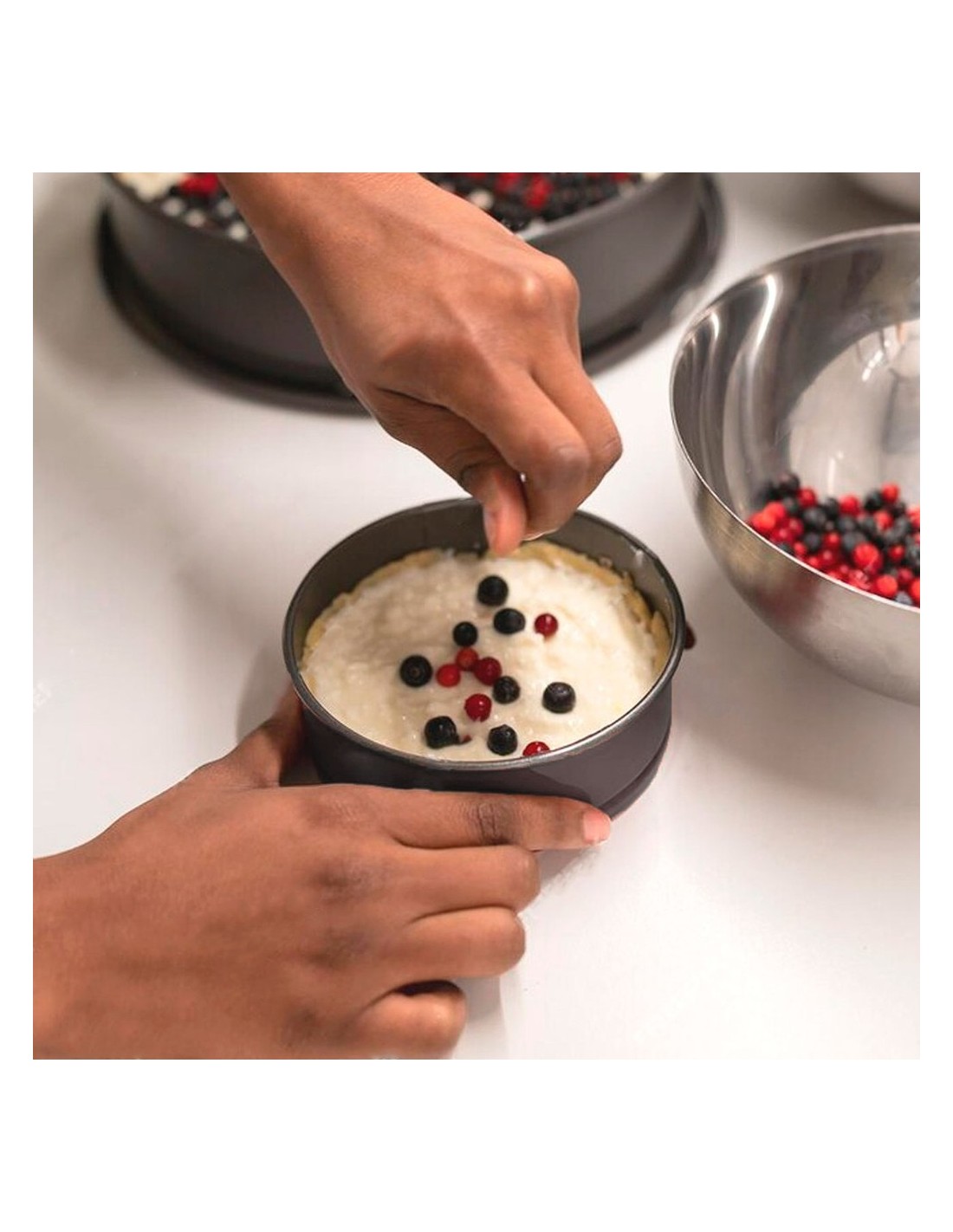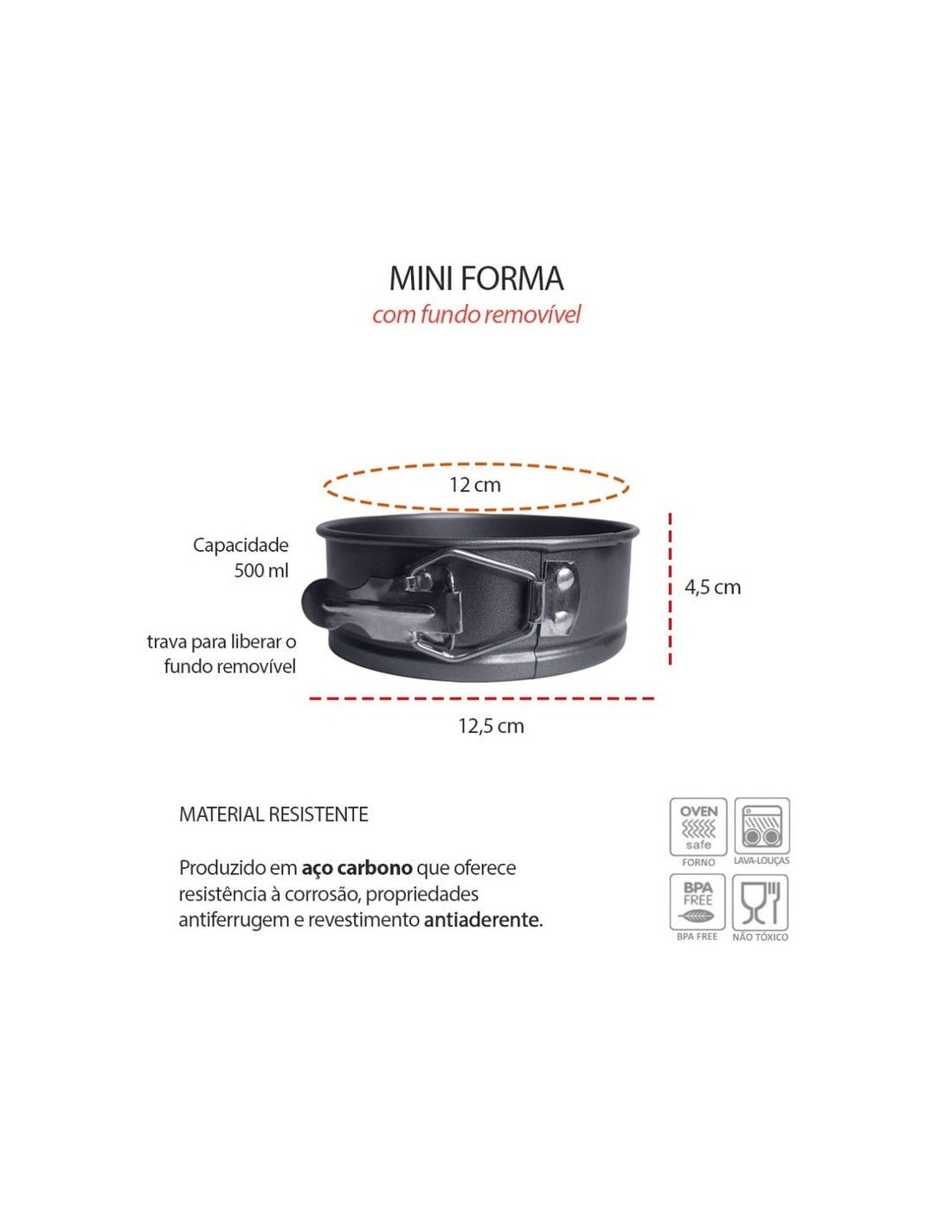 Forma antiaderente para mini bolo com fundo removivel. A assadeira redonda com fundo removivel produzida em aço carbono com revestimento antiaderente. Forminha perfeita para assar mini cake, bolinhos, tortas e muito mais.