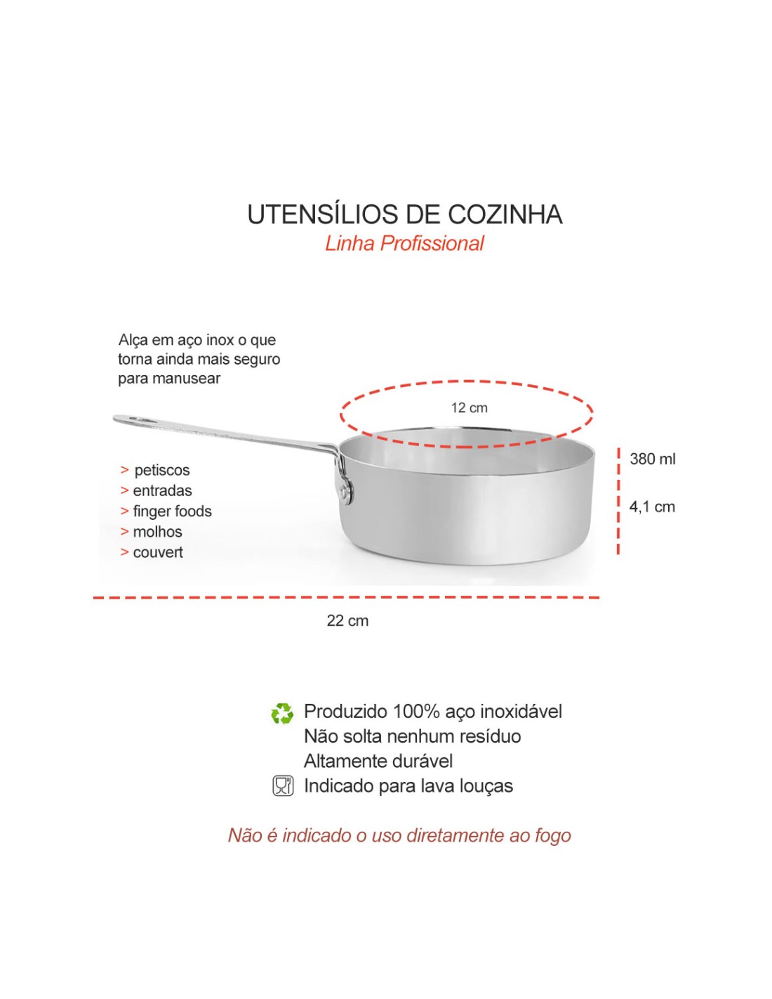 Panela Courvet é pequena e perfeita para servir entradas, aperitivos, sobremesas e pratos gourmet. As mini panelas sao versateis, podem ser utilizadas misturar, auxiliar no preparo e servir finger foods. Elas sao perfeitas para buffet, restaurante e bistro. As mini panelas sao produzidas em aço inox super resistente e duraveis.
