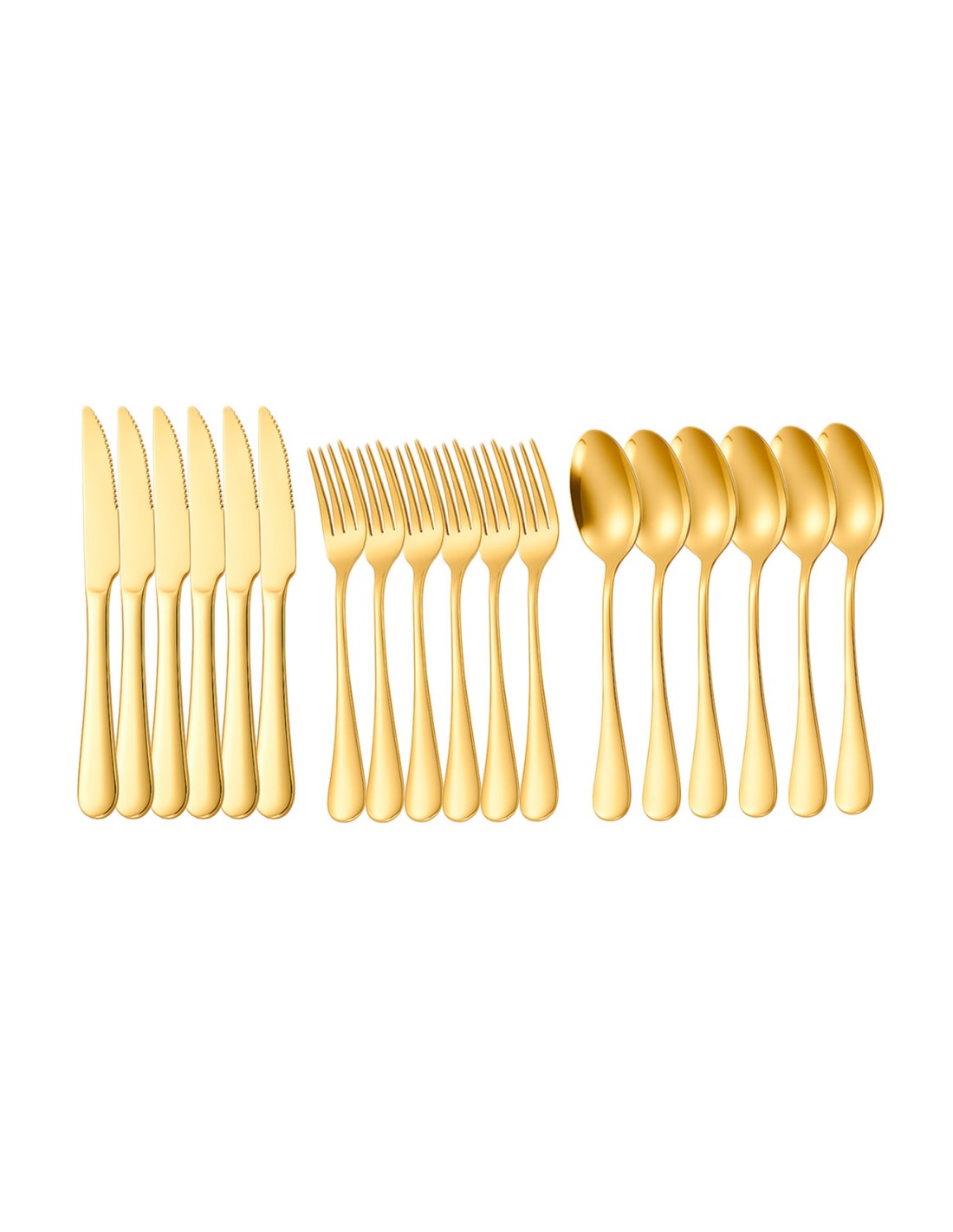 Faca de Mesa Serrilhada Dourada Ouro Talher Aço Inox Buffet Jogo 6un