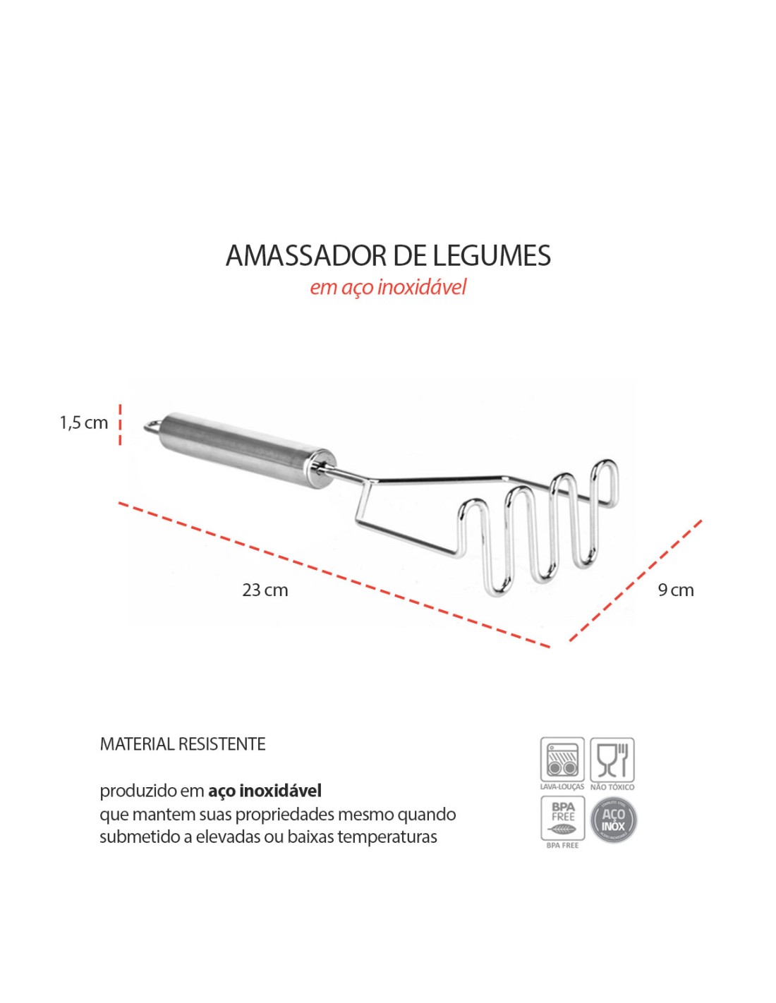 O amassador de batata em aço inox é pratico e funcional para preparar pures com mais facilidade e textura uniforme. Produzido em aço inox, é resistente, nao enferruja e suporta mudanças de temperatura sem deformar, garantindo durabilidade no uso. Sua base perfurada proporciona amassamento eficiente de batatas e outros legumes cozidos, tornando o preparo...