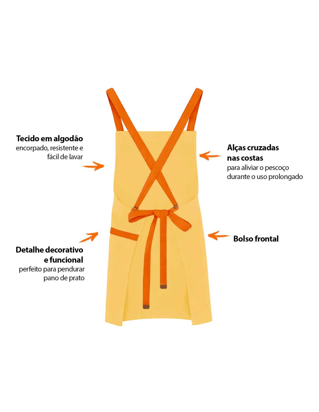 Avental Amarelo Alça Cruzada Algodao
