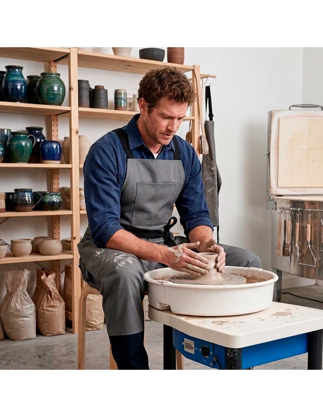 avental ceramista bege