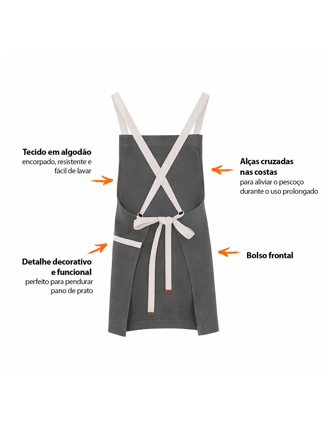 Avental Cinza Alça Cruzada Algodao