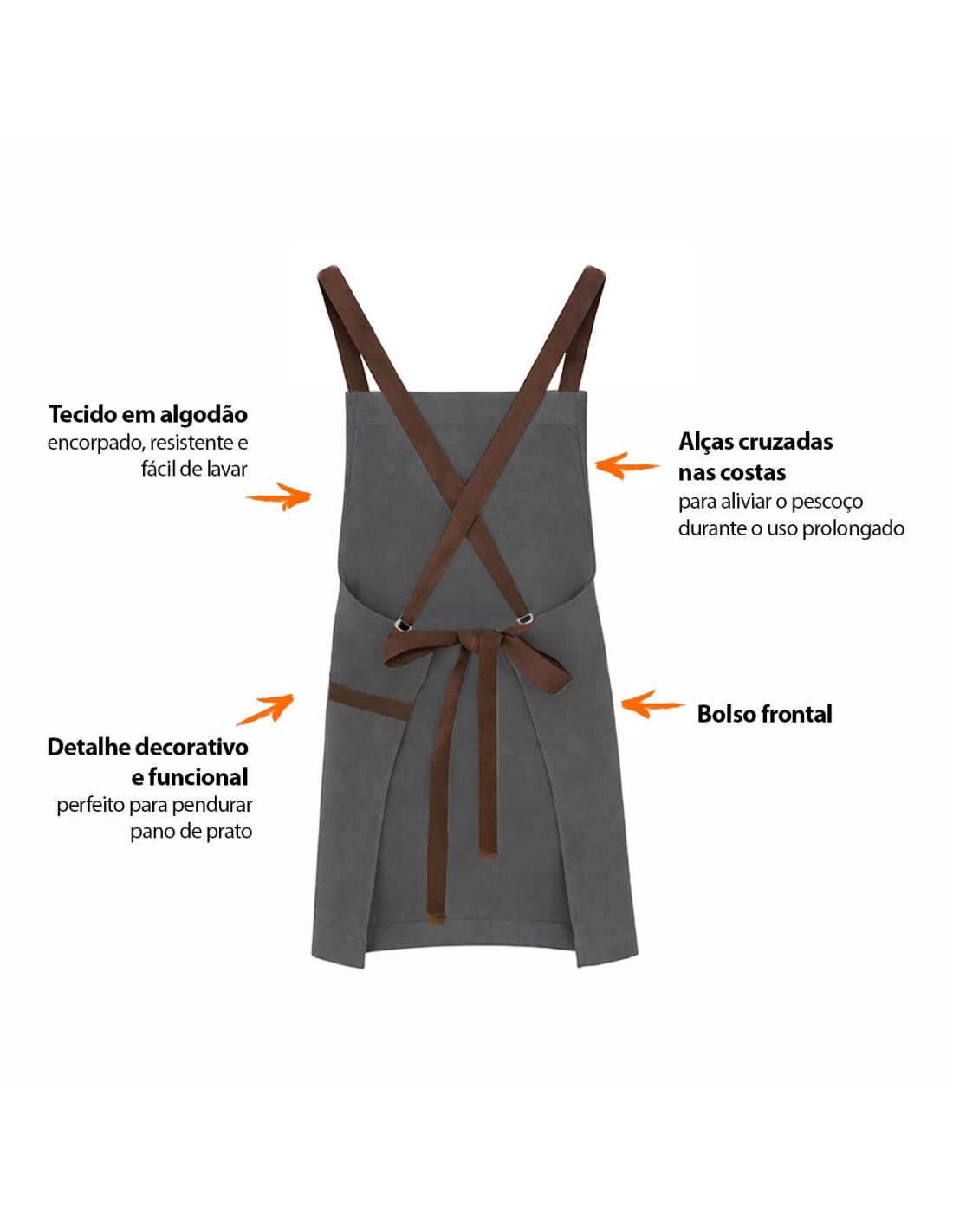 Avental Cinza Alça Cruzada Algodao