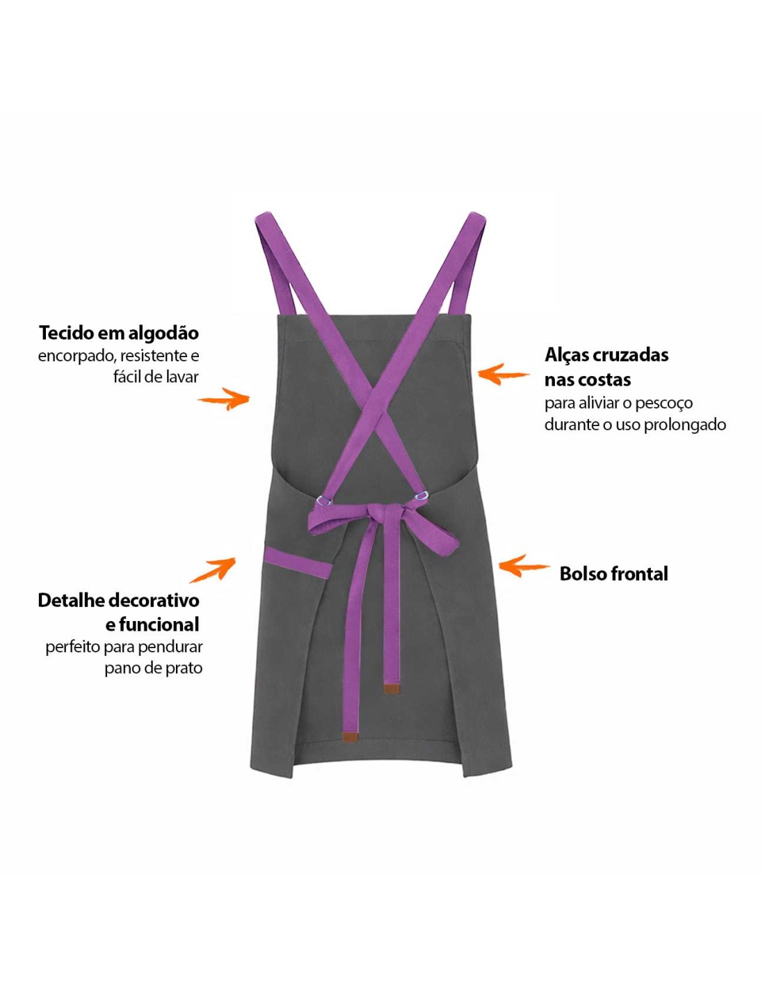 Avental Cinza Alça Cruzada Roxo Restaurante Bar...