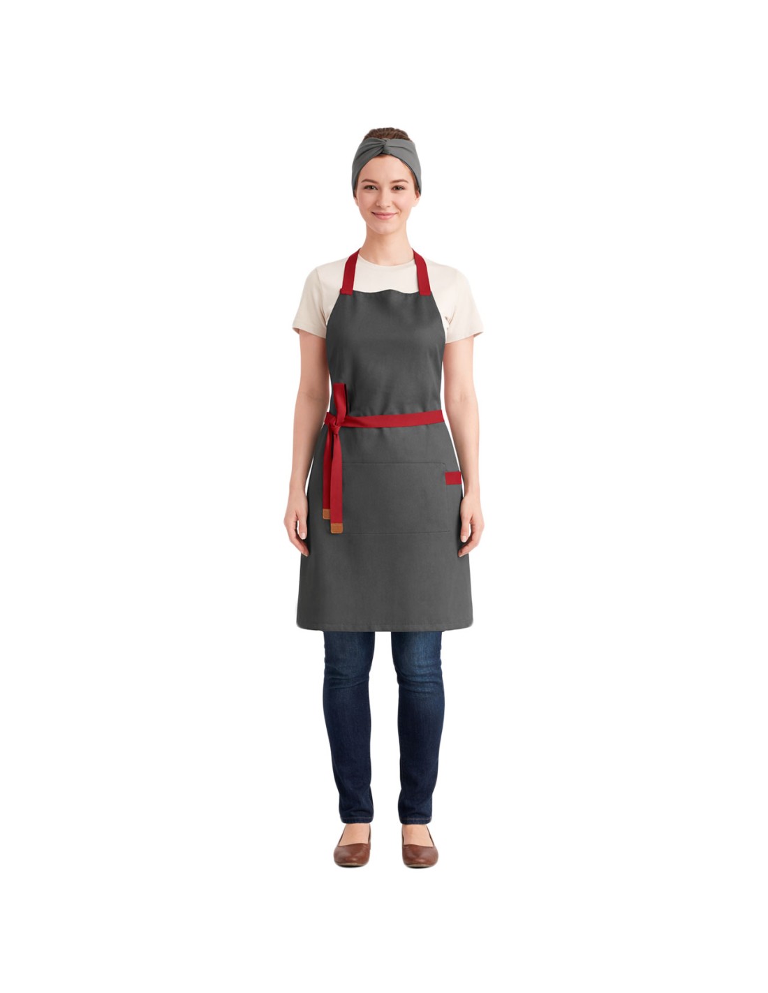 Avental Cinza Alça Cruzada Vermelha Restaurante...