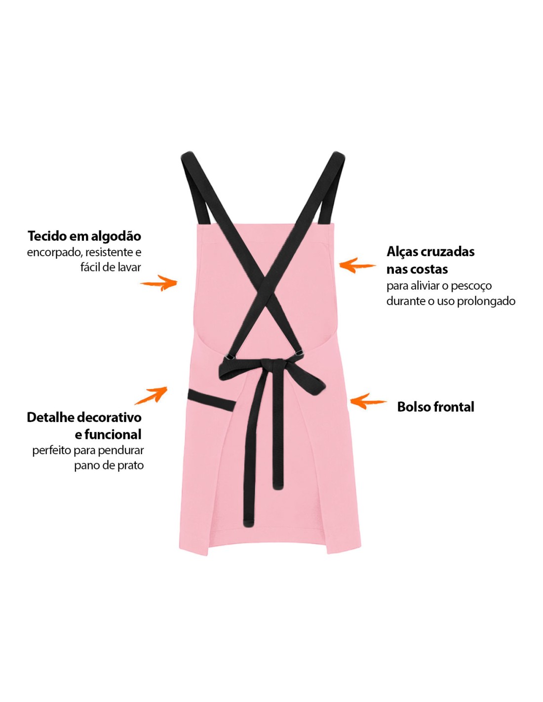 Avental Rosa Alça Cruzada Preto Confeitaria...