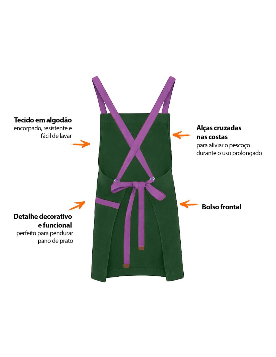 Avental Verde Alça Cruzada Algodao