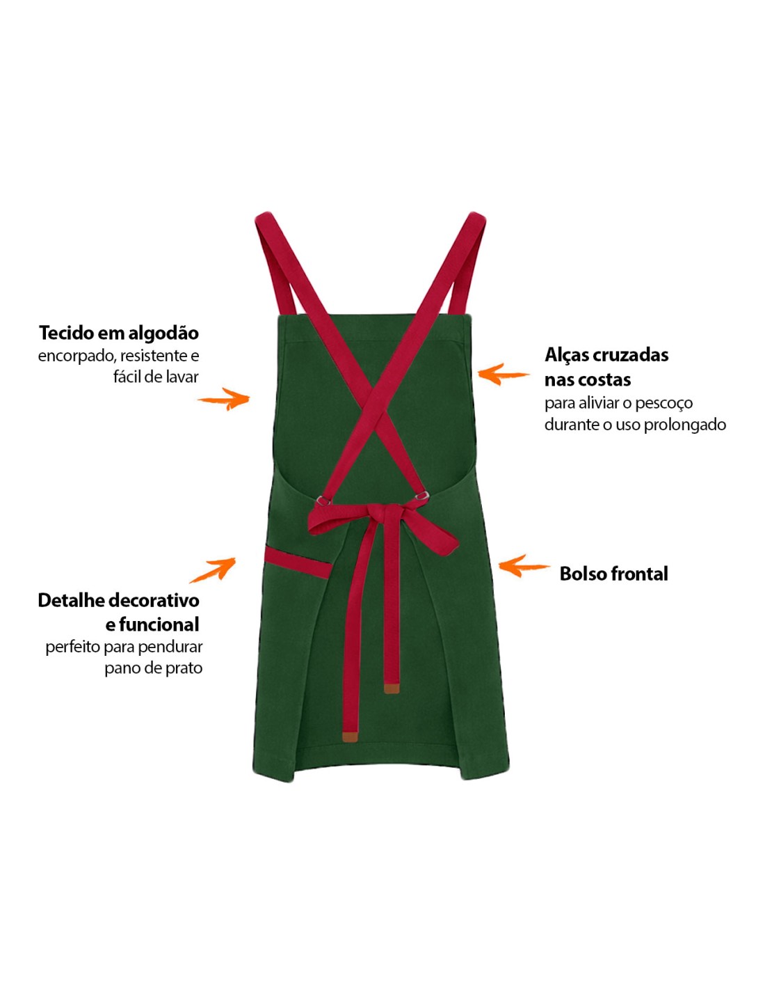 Avental corpo inteiro com alças cruzadas nas costas e bolso frontal. Este modelo de avental com alças cruzadas é ideal para aliviar o pescoço durante o uso prolongado. Possui detalhe decorativo e funcional ao lado do bolso, perfeito para pendurar pano de prato. Feito para chef de cozinha, barista, jardinagem, pintura e outros. Este avental atende bem aos clientes mais exigentes priorizando conforto, qualidade e estilo. Produzido em tecido 100% algodao, facil de lavar e indicado para uso na maquina de lavar roupa.