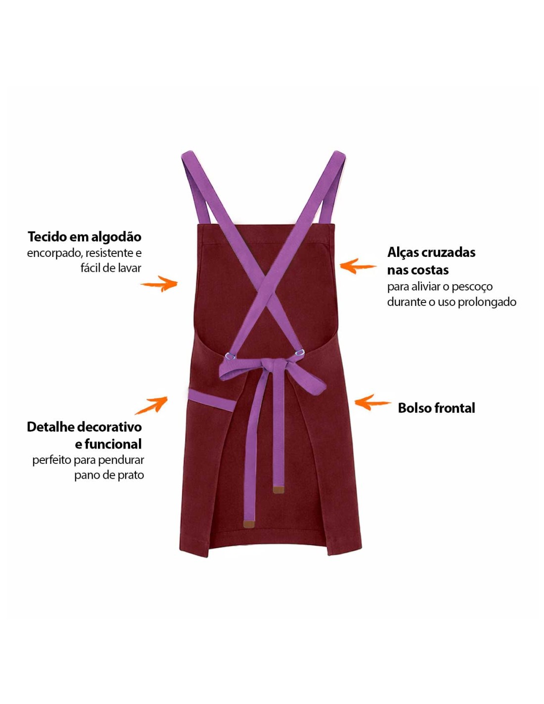 Avental corpo inteiro com alças cruzadas nas costas e bolso frontal. Este modelo de avental com alças cruzadas é ideal para aliviar o pescoço durante o uso prolongado. Possui detalhe decorativo e funcional ao lado do bolso, perfeito para pendurar pano de prato. Feito para chef de cozinha, barista, jardinagem, pintura e outros. Este avental atende bem aos clientes mais exigentes priorizando conforto, qualidade e estilo. Produzido em tecido 100% algodao, facil de lavar e indicado para uso na maquina de lavar roupa.