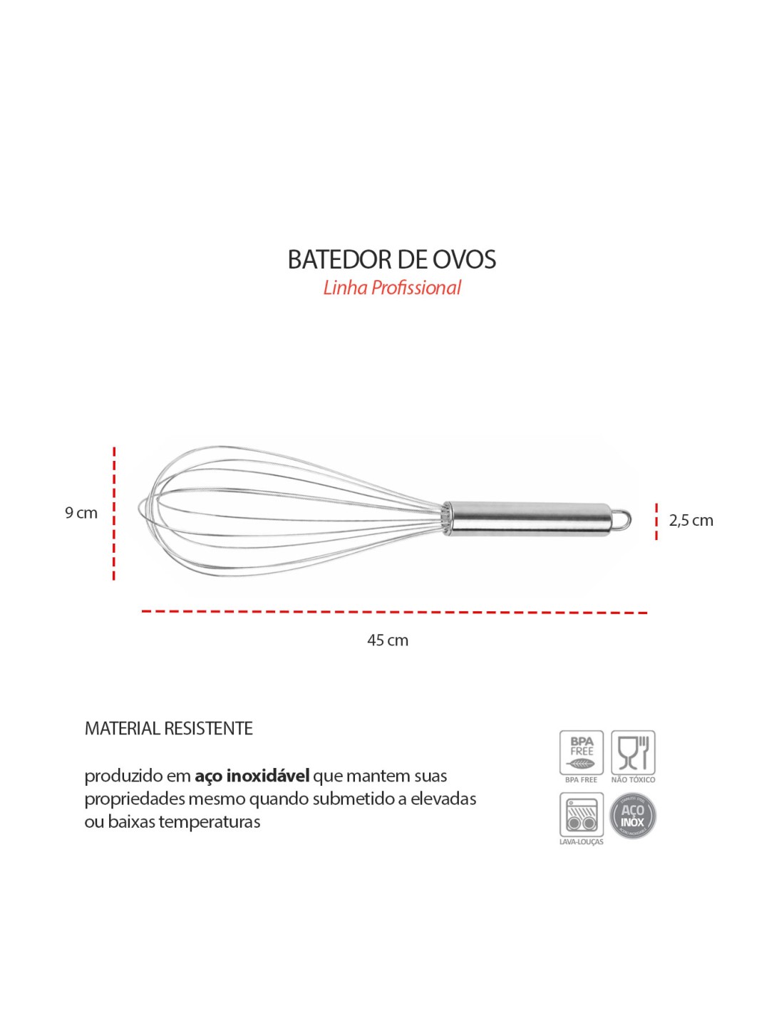 Batedor de Ovos Clara Manual Fouet Inox Grande Profissional 40cm