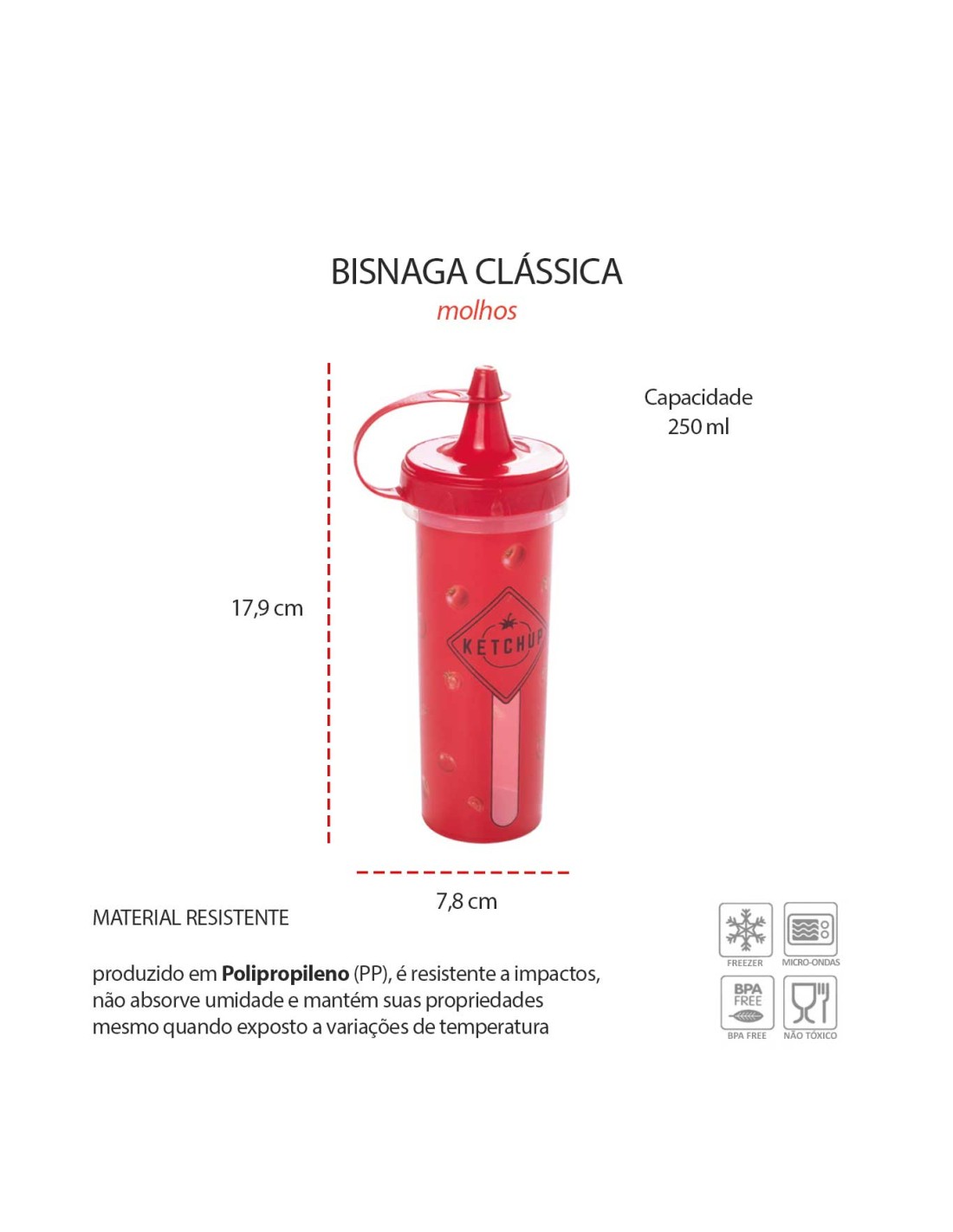 A bisnaga de molhos é pratica e funcional para armazenar e servir condimentos com mais controle no dia a dia. Possui visor que permite acompanhar o nivel do conteudo, facilitando o uso e a reposiçao. Ideal para uso em casa, cozinha do dia a dia, bares e restaurantes, permite aplicaçao precisa de molhos, caldas e cremes. Produzida em polipropileno, é atoxica, BPA free, resistente e facil de limpar, garantindo praticidade e organizaçao. Nao lavar em lava louça.
