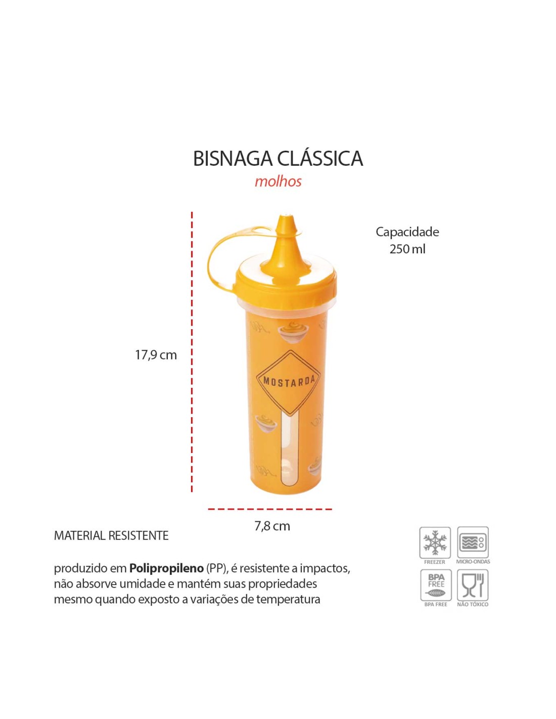 A bisnaga de molhos é pratica e funcional para armazenar e servir condimentos com mais controle no dia a dia. Possui visor que permite acompanhar o nivel do conteudo, facilitando o uso e a reposiçao. Ideal para uso em casa, cozinha do dia a dia, bares e restaurantes, permite aplicaçao precisa de molhos, caldas e cremes. Produzida em polipropileno, é atoxica, BPA free, resistente e facil de limpar, garantindo praticidade e organizaçao. Nao lavar em lava louça.