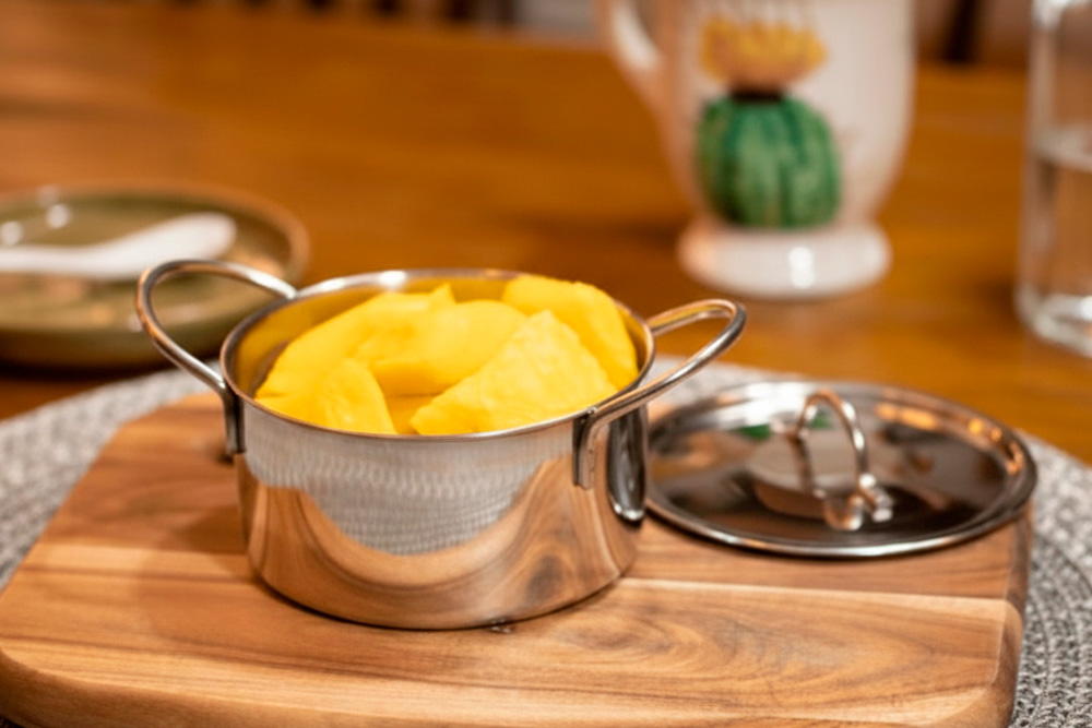 Muito utilizada para finger foods, a mini caçarola é excelente para apresentar entradas, aperitivos, petiscos e pequenas porçoes individuais de maneira sofisticada, remetendo ao estilo de restaurantes modernos. Ela tambem é uma otima escolha para sobremesas, como mousse, brigadeiro gourmet, frutas aquecidas e pequenos bolos servidos diretamente na mesa. Tudo com um visual profissional que valoriza cada detalhe.