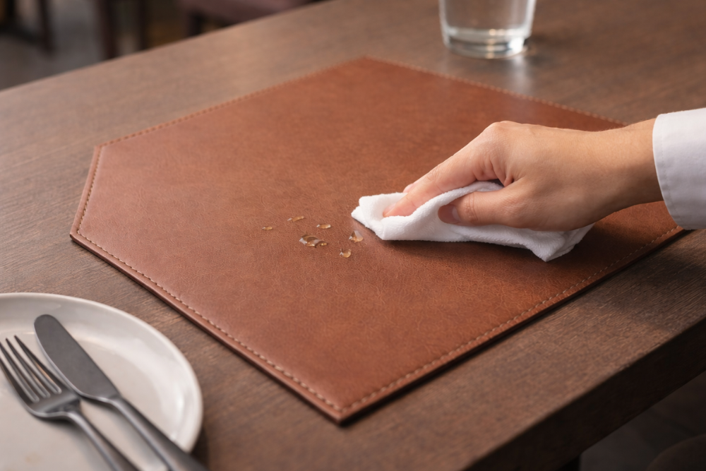 O Jogo Americano permite limpeza rapida com pano seco ou levemente umido, mantendo a mesa organizada durante todo o atendimento. Essa facilidade reduz riscos de manchas permanentes e melhora o controle sanitario.