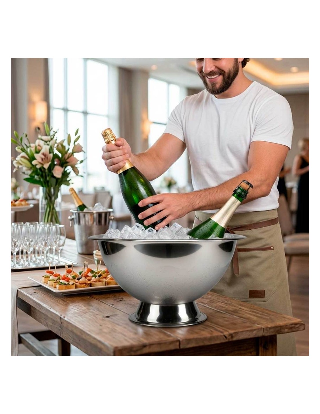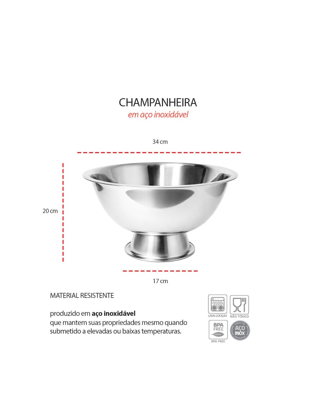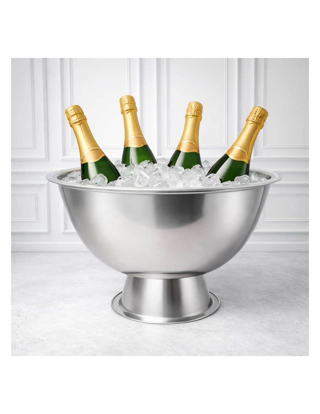 A champanheira balde de gelo em aço inox é elegante e pratica para manter garrafas e bebidas sempre na temperatura ideal. Com capacidade de 7,5 litros, é perfeita para uso em buffet, eventos e bares, trazendo mais sofisticaçao e organizaçao ao servir. Produzida em aço inox, é resistente, duravel e facil de limpar, sendo uma opçao pratica para acomodar gelo, garrafas de vinho, espumante e outras bebidas.