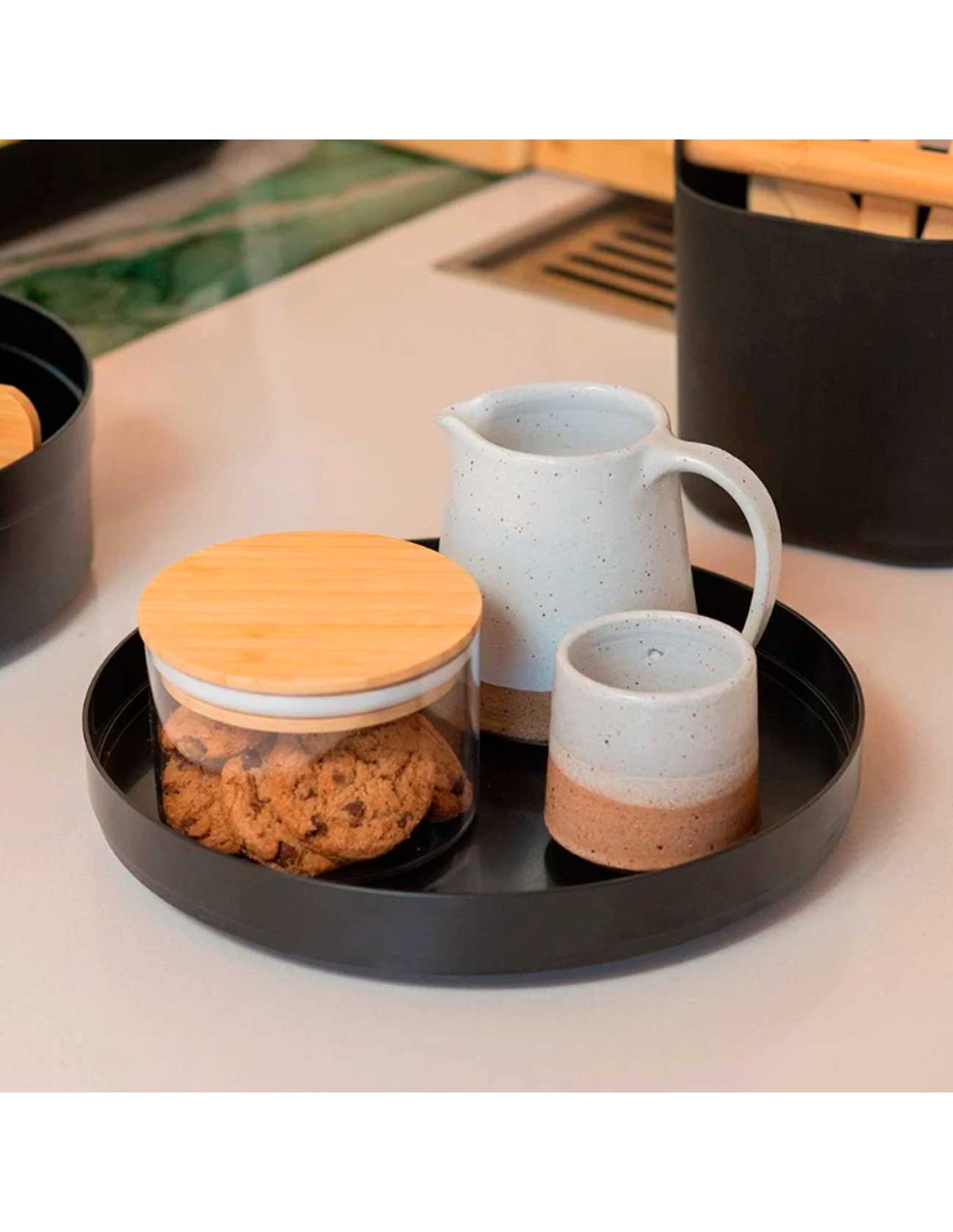 Manteigueira Preto com Tampa Bambu
