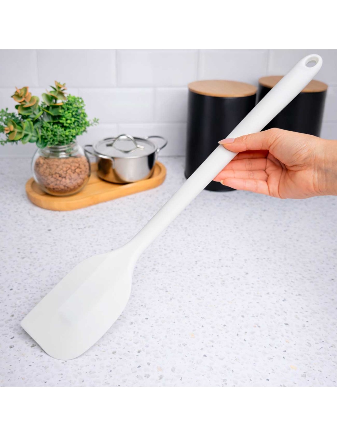 Espatula Grande Cabo Longo Silicone Branco Buffet Profissional 45cm