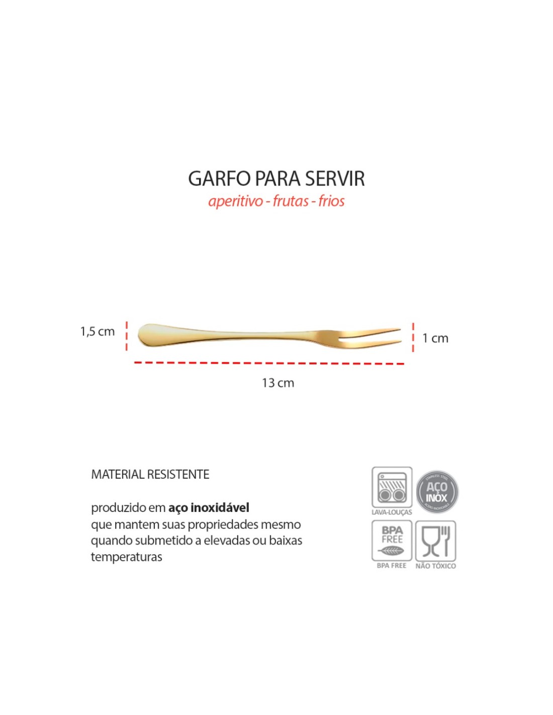Garfo para Frutos do Mar Petiscos Mariscos Garfinho Aço Inox Dourado 6un