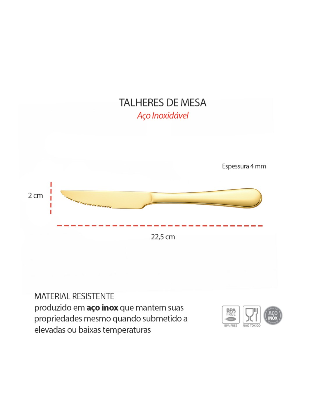 Garfo de Sobremesa Bolo Dourado Talheres Inox Bar Buffet 6un