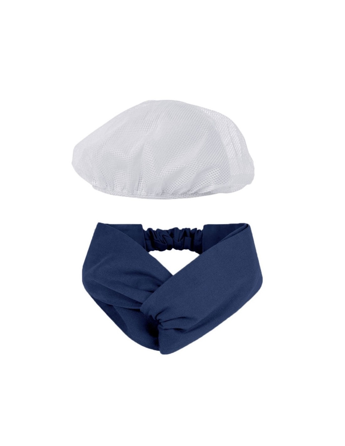 Faixa Cabelo Turbante Azul Marinho Touca Redinha Branca Cozinha