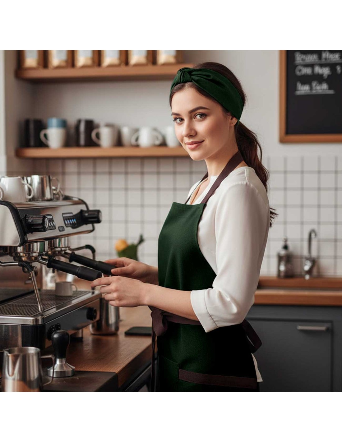 Avental Verde Alça Cruzada Marrom...