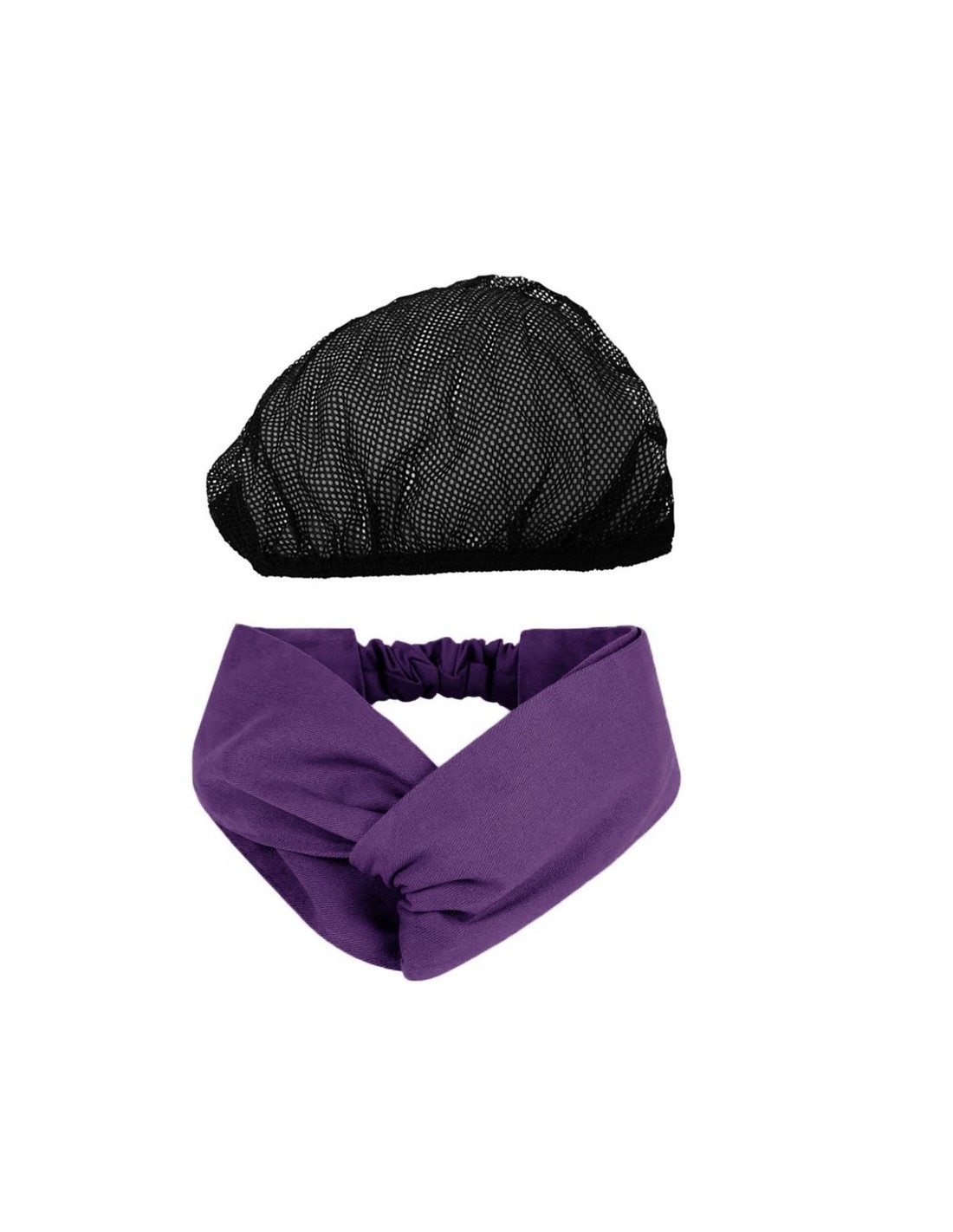 Faixa de Cabelo Turbante Roxo e Touca Redinha Preta Cozinha