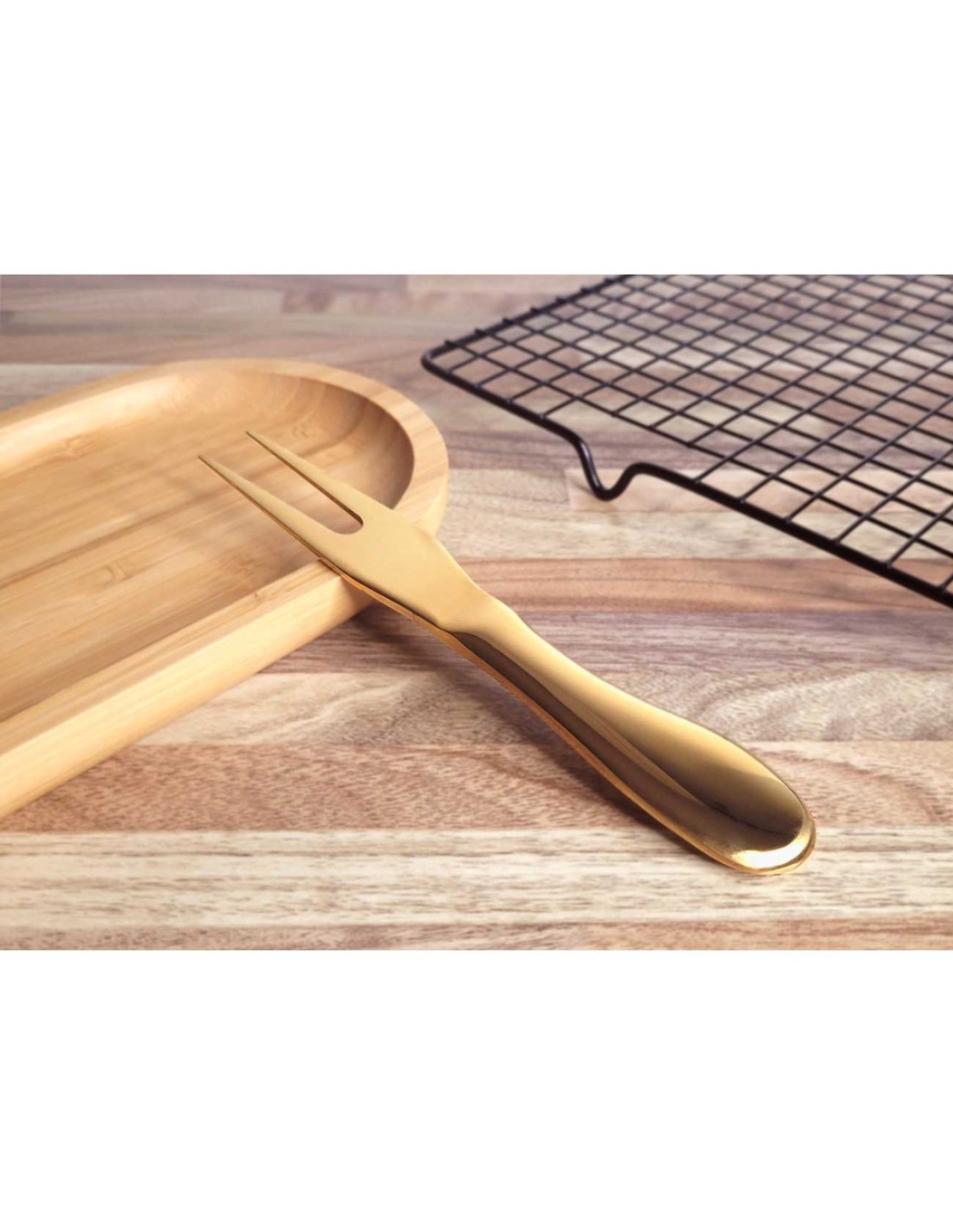 Garfo Queijo Frios e Garfo Petiscos Frutas Dourado Inox 5un