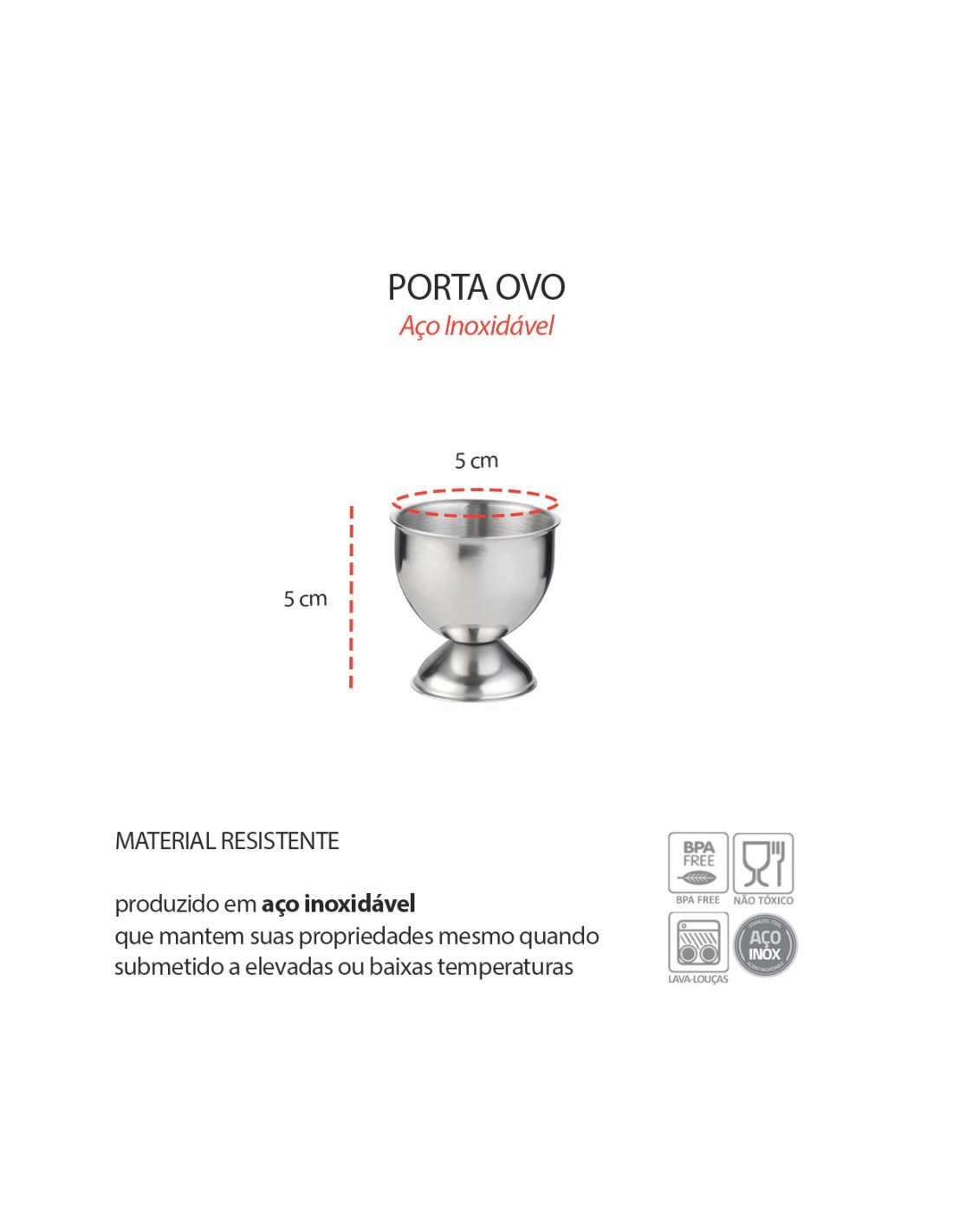Porta Ovo como mini taça. Perfeito para servir ovos cozidos ou ovos quentes, evitando que escorregue ou queime as mãos. O porta ovo possui uma base para manter estabilidade ao objeto, proporcionando mais segurança em seu manuseio. O suporte em aço inox, garante a durabilidade da peça, pois nao enferruja e mantem o brilho por muito mais tempo.