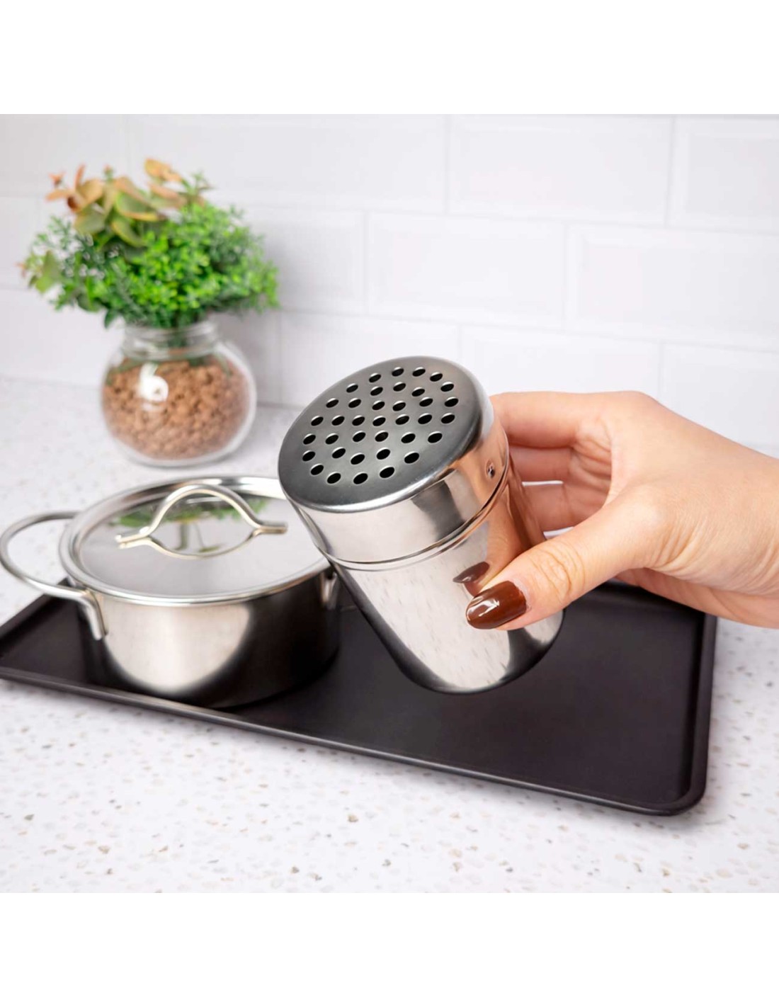 A queijeira em aço inox é pratica e funcional, ideal para armazenar queijo ralado, temperos e condimentos com mais higiene e organizaçao. Compacta e resistente, ajuda a manter o conteudo protegido e sempre pronto para o uso no preparo ou na finalizaçao de pratos. Com design simples e elegante, é perfeita para a cozinha, mesa posta ou areas gourmet, trazendo praticidade e um visual moderno ao dia a dia.