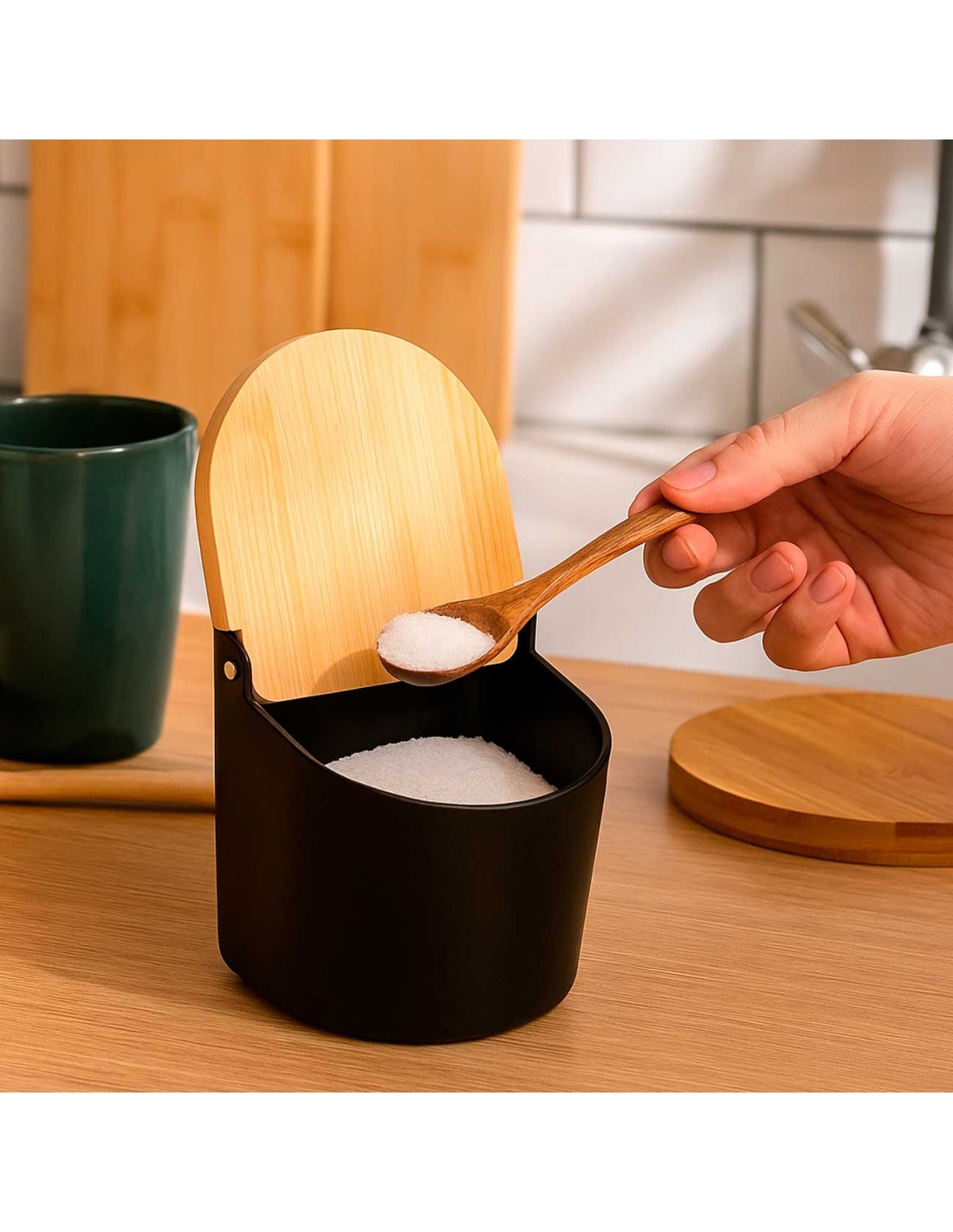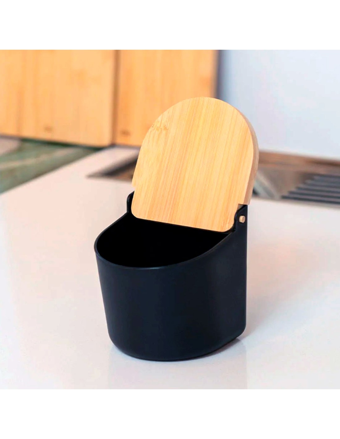 Manteigueira Preto com Tampa Bambu