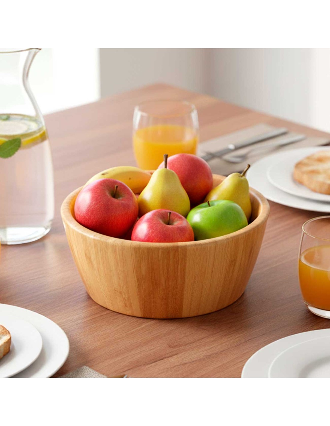 Tigela bowl em bambu. A tigela é perfeita como saladeira e fruteira. O Bambu traz a inovaçao ecologica com agentes bactericidas, que previnem o aparecimento de fungos e bacterias. Sao resistentes e com menor absorçao de liquidos, se forem bem conservados, nao ficam escuros com facilidade. E por ser organico e natural, pode ocorrer leves variaçoes de tonalidade.